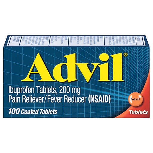 Advil Coated Tablets 200 Mg Pain Reliever/Fever Reducer 100 Ea
